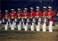 The United States Marine Drum and Bugle Corps was formed in 1934, at historic Marine Barracks, Washington, D.C., to augment the United States Marine Band. The unit provided musical support to ceremonies around the nation's capitol and, during World War II, was additionally tasked with Presidential support duties. For this additional role, they were awarded the scarlet and gold breastcord by President Franklin Delano Roosevelt, which they now proudly display on their uniform.
