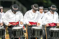Peter Bishop is the corps director and business manager, and on the field, the corps is in the capable hands of Chuck Bishop, who holds the distinction of having been a drum major with all three Hawthorne corps: the Muchachos, the Caballeros, and now, the Caballeros Alumni Corps. Chris Sortino is the current alumni president.